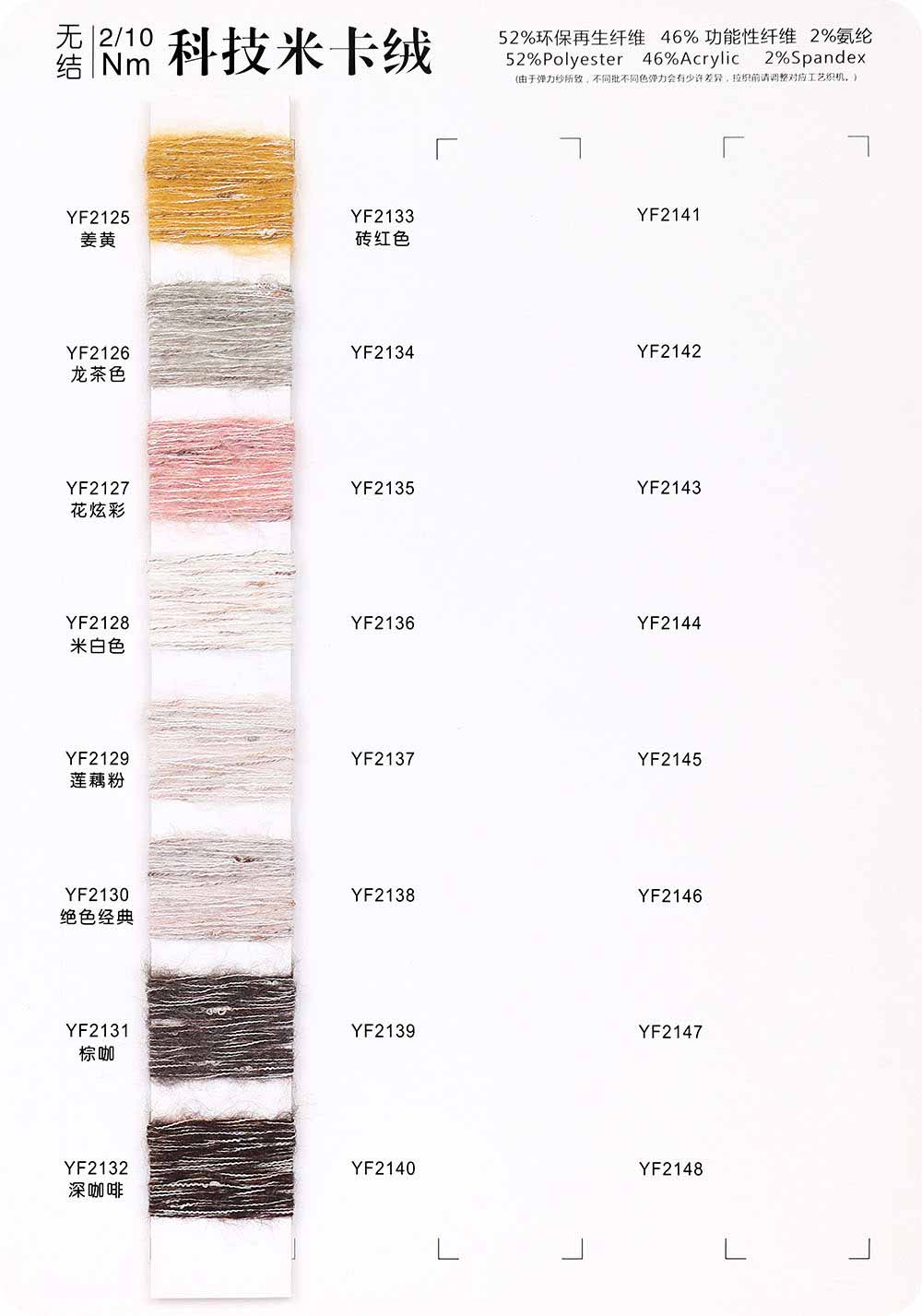 52%环保再生纤维Polyester 46%功能性纤维Acrylic 2%氨纶Spandex